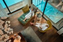 Auf rund 4.000 m² Innen- und Außenbereich erwartet Sie unsere exklusive Wellnesswelt – der einzigartige Livingroom SPA. Freuen Sie sich auf einen Innenpool, einen ganzjährig beheizten Außenpool sowie einen textilfreien Naturpool. Der großzügige Saunabereich mit fünf Saunen, zwei Dampfbädern, Rhassoul, privatem Hammam und Salzluft-Raum schafft Raum für ganzheitliche Entspannung.